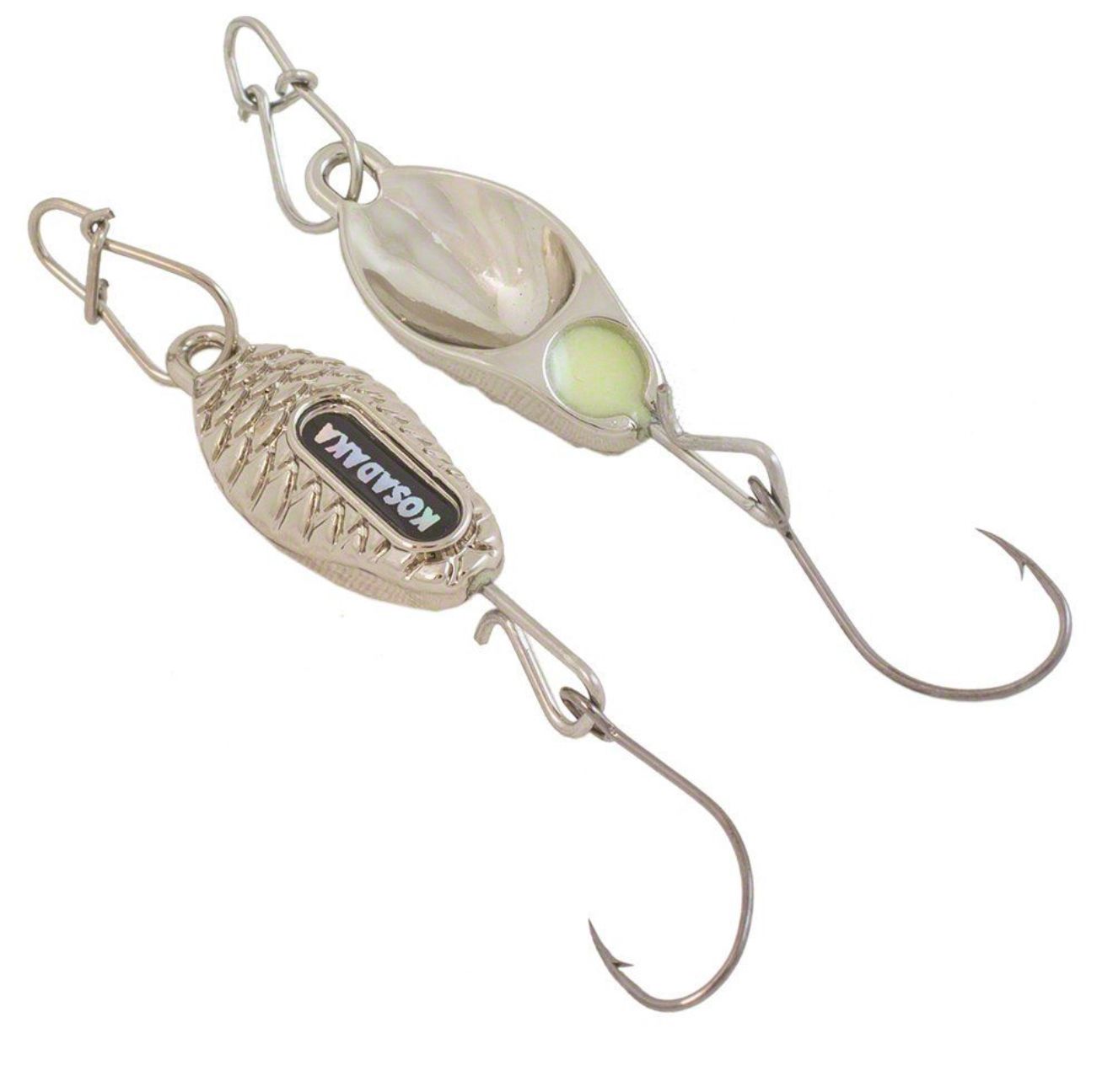 Kosadaka XTR1 — це мікроблешня зі зміщеним центром ваги, яка при проводці точно імітує поведінку пораненого малька. На її поверхню нанесено об’ємне тиснення у вигляді луски з фосфоресцентною міткою, що підвищує видимість у затемнених зонах водойми.