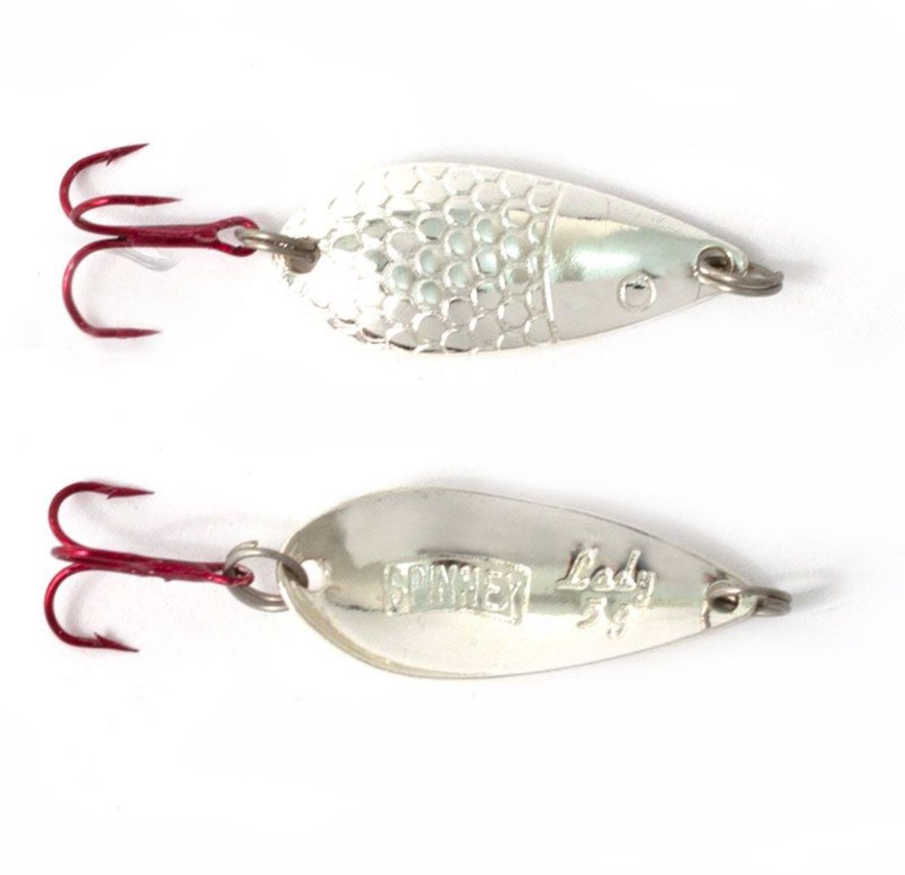 Spinnex Lady (9г, срібло) — універсальна блешня-коливалка, що забезпечує високу ефективність на річках, озерах і водосховищах. Її витягнута форма, що нагадує водорість, сприяє стабільній грі навіть на слабкій або середній течії, а також забезпечує хороші польотні характеристики.