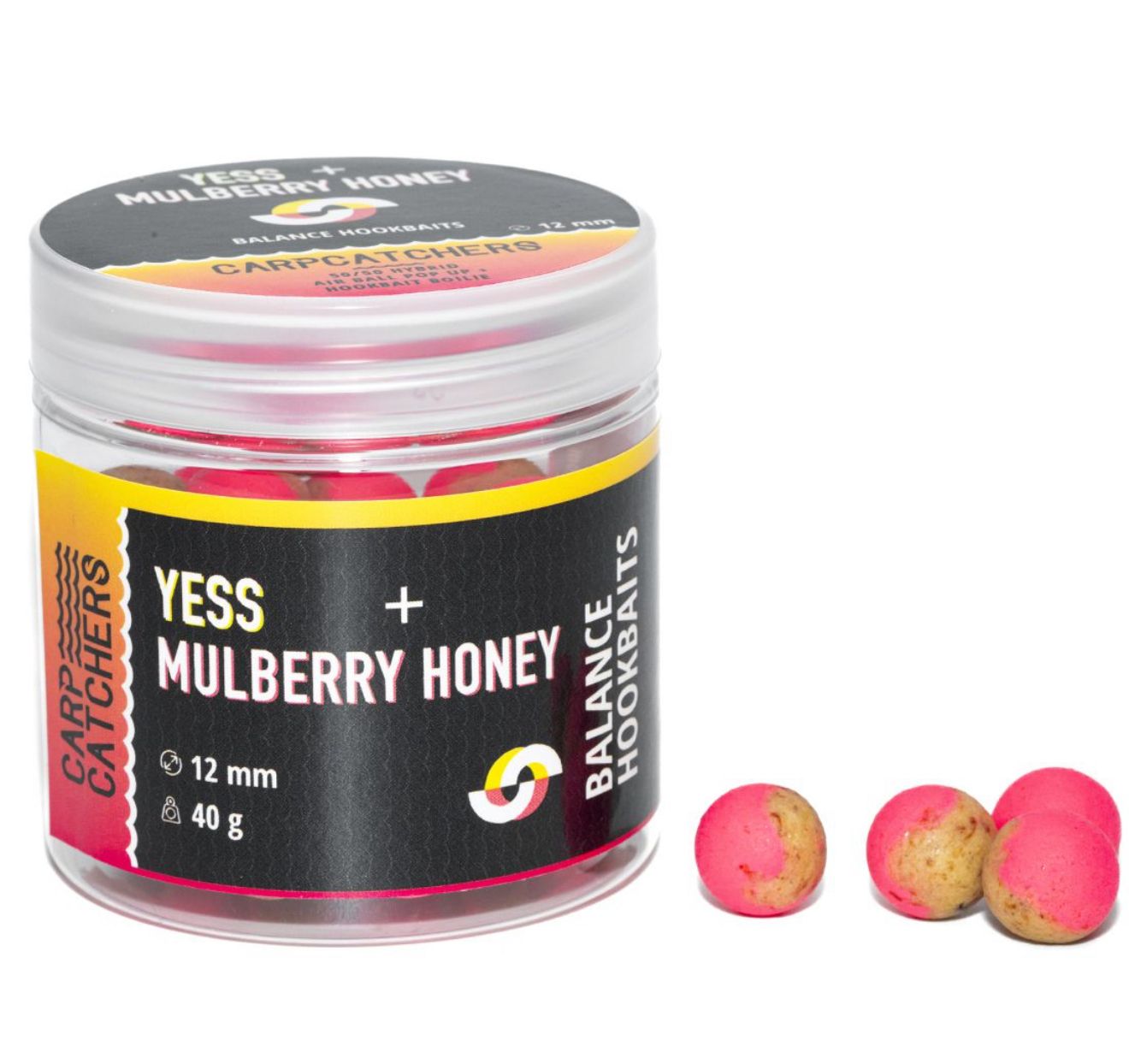 Бойли YESS виготовлені на основі різних видів горіхової муки, молочних протеїнів і мають змішаний сливово-горіховий смак. Поп-ап Mulberry Honey поєднує в собі кисло-солодкий аромат шовковиці та меду, створюючи неперевершену привабливу суміш для риби.