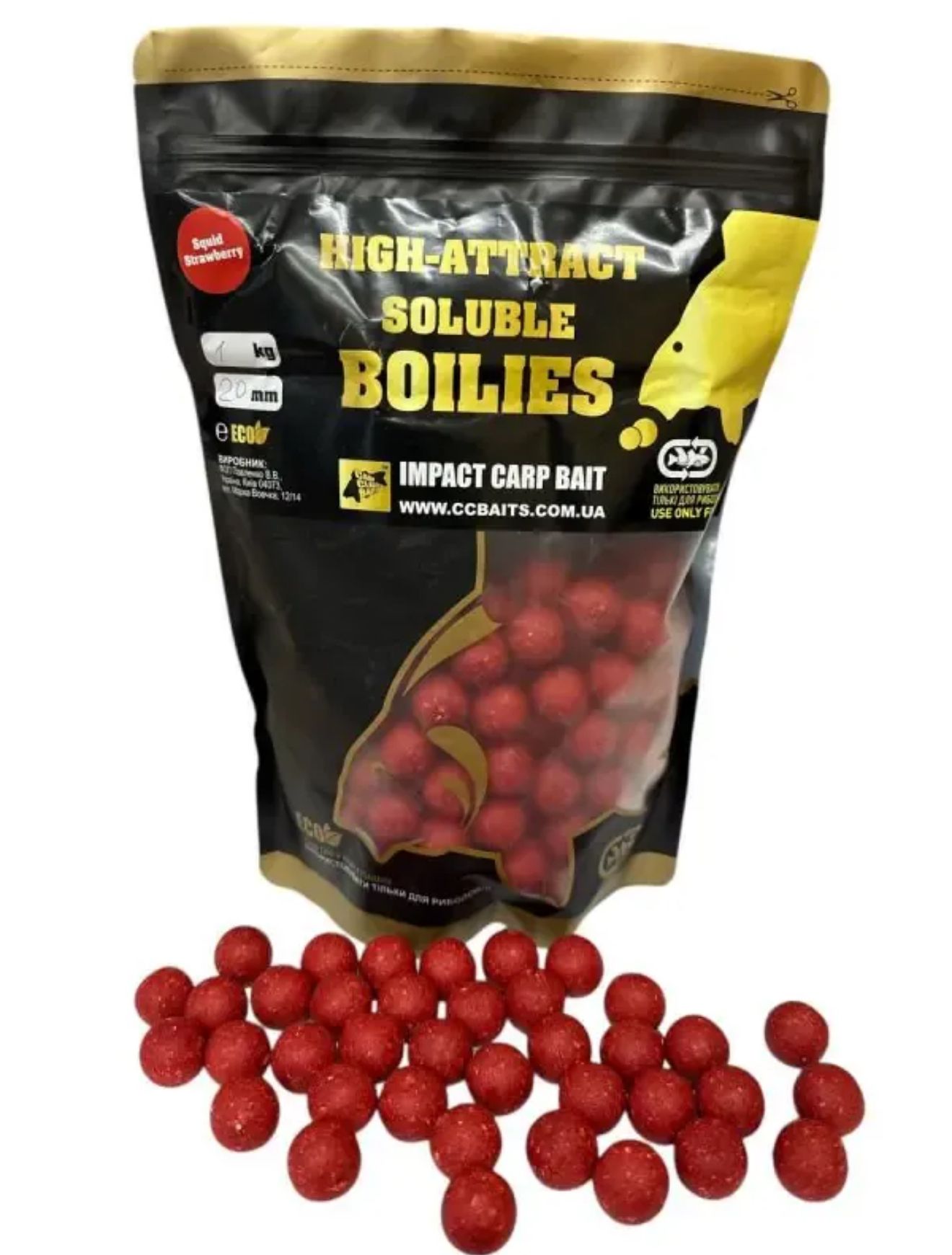 Бойли CCBaits Economic Soluble High-Attract - Димові - Розчинні - Squid-Strawberry (Кальмар-Полуниця) Ø20 мм - 1 кг
