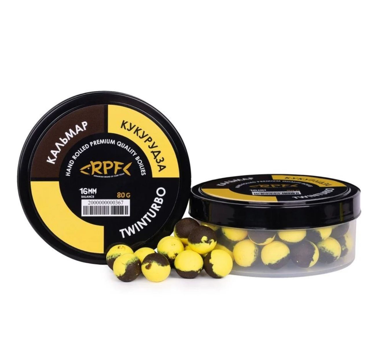 Бойли RPF - Кальмар+Кукурудза - Ø16 мм - Баланс TwinTurbo (Бойл+Поп-ап) - Нейтральна плавучість - Двоколірні