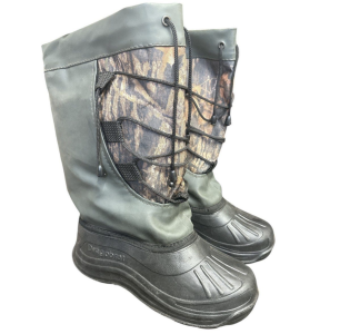 Верх виконаний із щільного зносостійкого ПВХ з камуфляжною вставкою «Осінній ліс», що підвищує практичність і маскування на природі. Манжета зі шнурівкою та фіксаторами дозволяє щільно затягнути халяву, захищаючи ногу від снігу, води й холодного повітря.