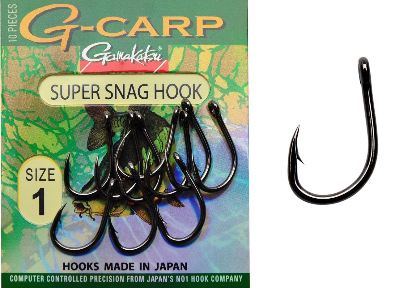 Gamakatsu G-Carp Super Snag — універсальний карповий гачок, виготовлений із товстої проволоки, що в поєднанні з кованим ців’ям забезпечує високу міцність і надійність. Цей гачок ідеально підходить для трофейного ловлення карпа завдяки своїй потужності та довговічності.