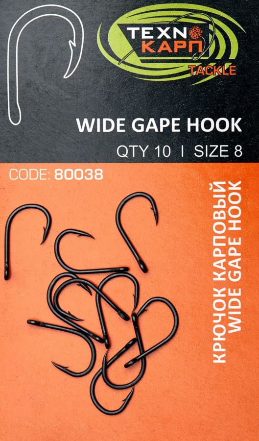 Гачок Technocarp Wide Gape розроблено з розширеним зевом спеціально для того, щоб навіть великі риби з широко відкритим ротом могли без зусиль його заковтнути. Така форма забезпечує покращену глибину засічки, що робить гачок надзвичайно ефективним у поєднанні з сучасними карповими монтажами.