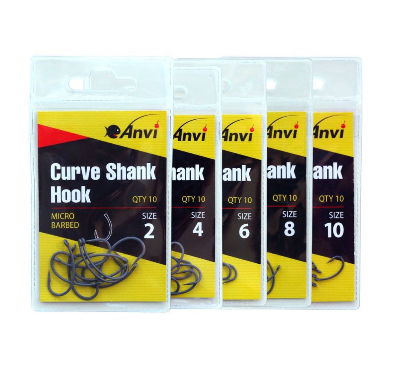 Anvi Curve Shank Hook доступні в розмірах №2, №4, №6, №8 та №10.