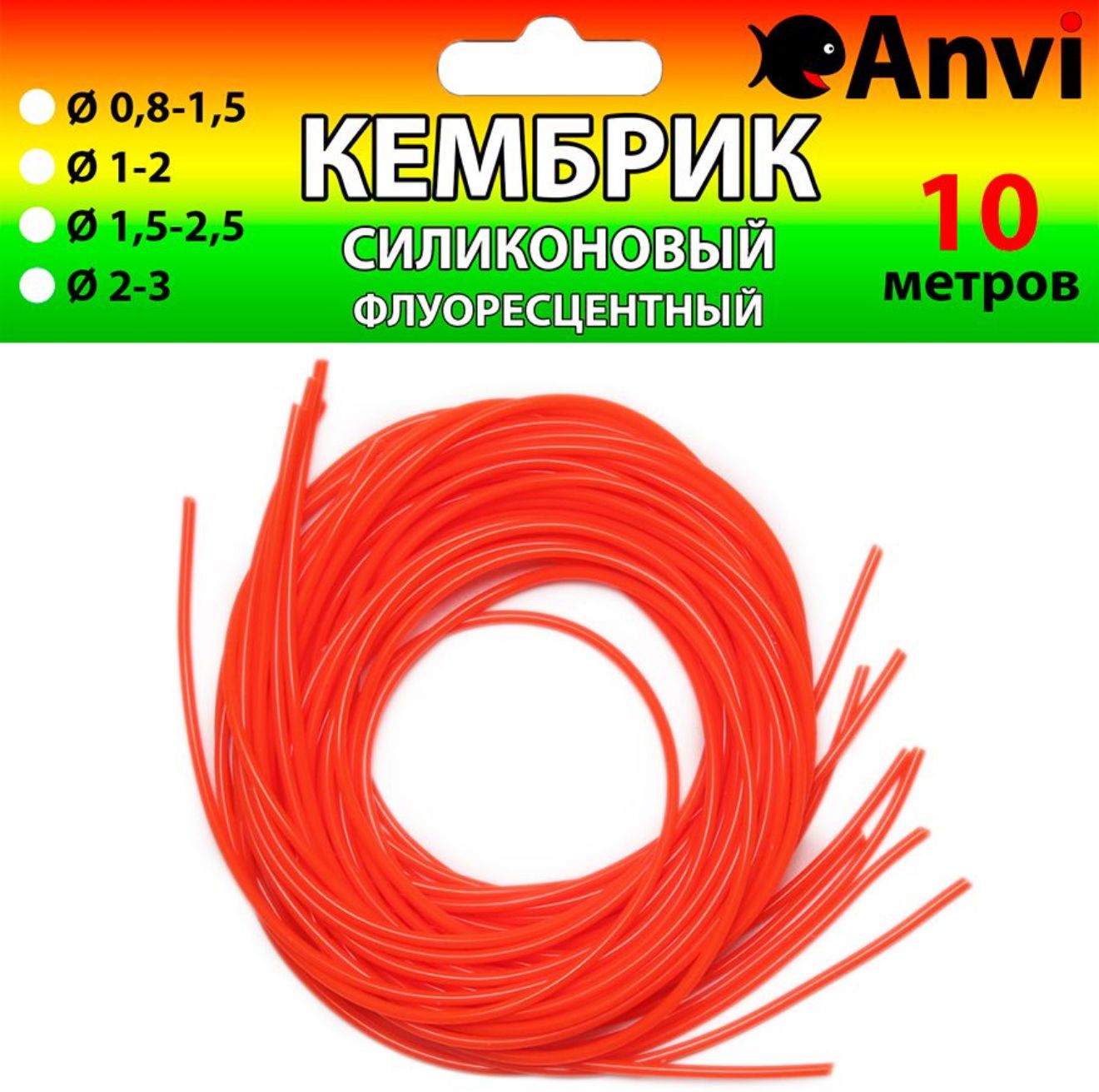 Кембрик силіконовий флуоресцентний Anvi - 10 метрів - Червоний
