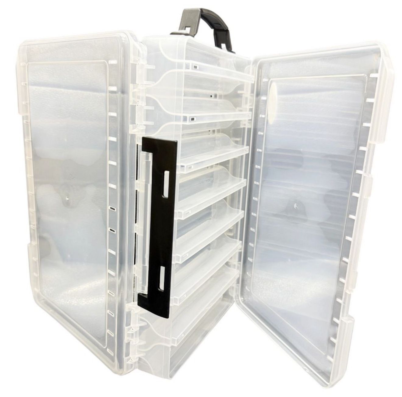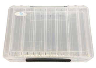 Briz 007 – простора та зручна двостороння коробка для зберігання і транспортування воблерів, блешень та інших приманок. Завдяки прозорому корпусу ви зможете швидко знайти потрібну оснастку без зайвих рухів. Кожна зі сторін має по 7 відділень, що дозволяє організувати до 14 приманок довжиною до 165 мм.