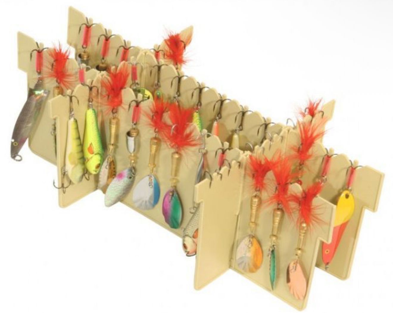 Якісна ємність, спеціально розроблена для зберігання блешень із урахуванням особливостей спінінгових приманок. Це компактний ящик із кришкою та висувною ручкою для зручного транспортування. Всередині передбачені спеціальні перегородки з виїмками, що дозволяють підвішувати блешні на гачок. Такий спосіб зберігання підходить також для воблерів і силіконових приманок на джиг-голівках або офсетних гачках.