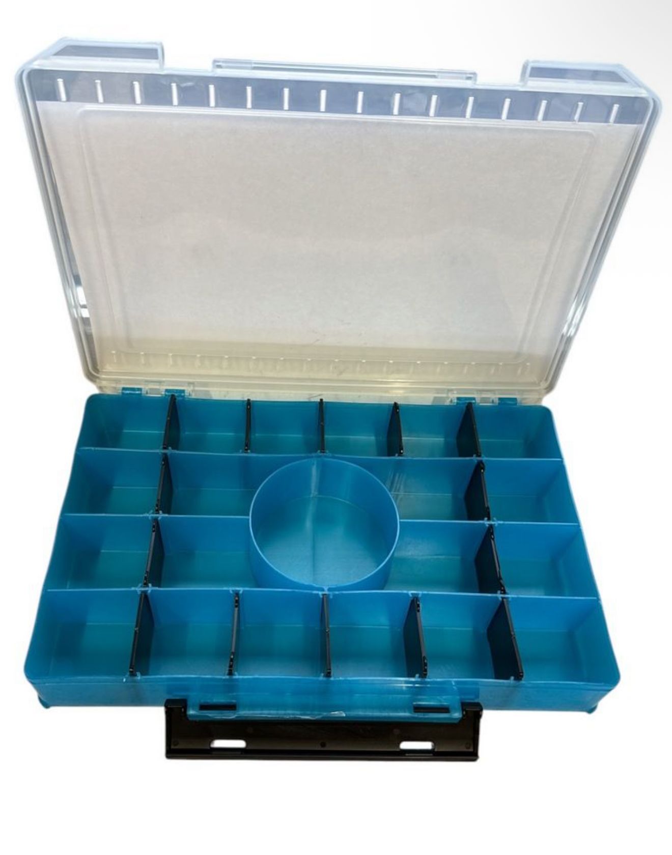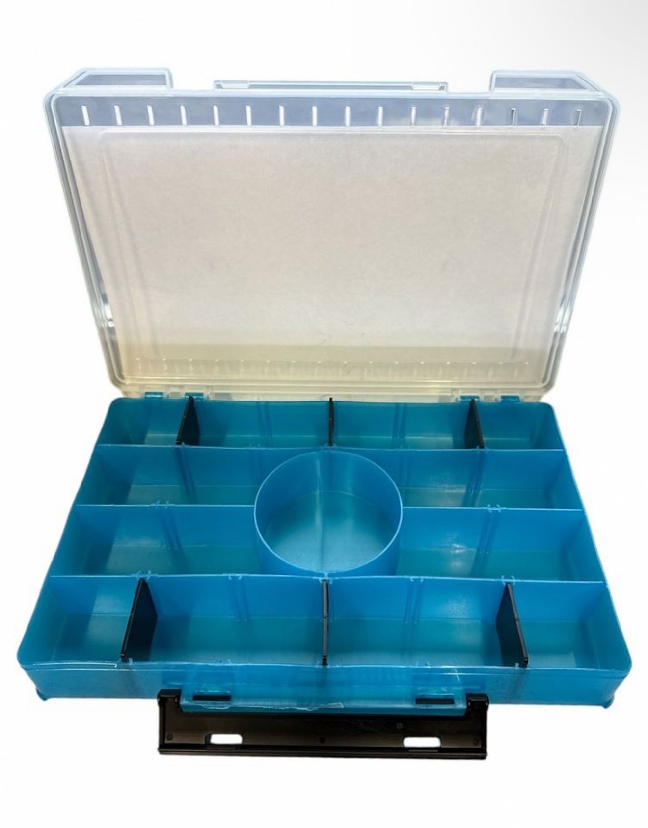 Зручна та функціональна коробка з відсіками для зберігання дрібних риболовних аксесуарів.