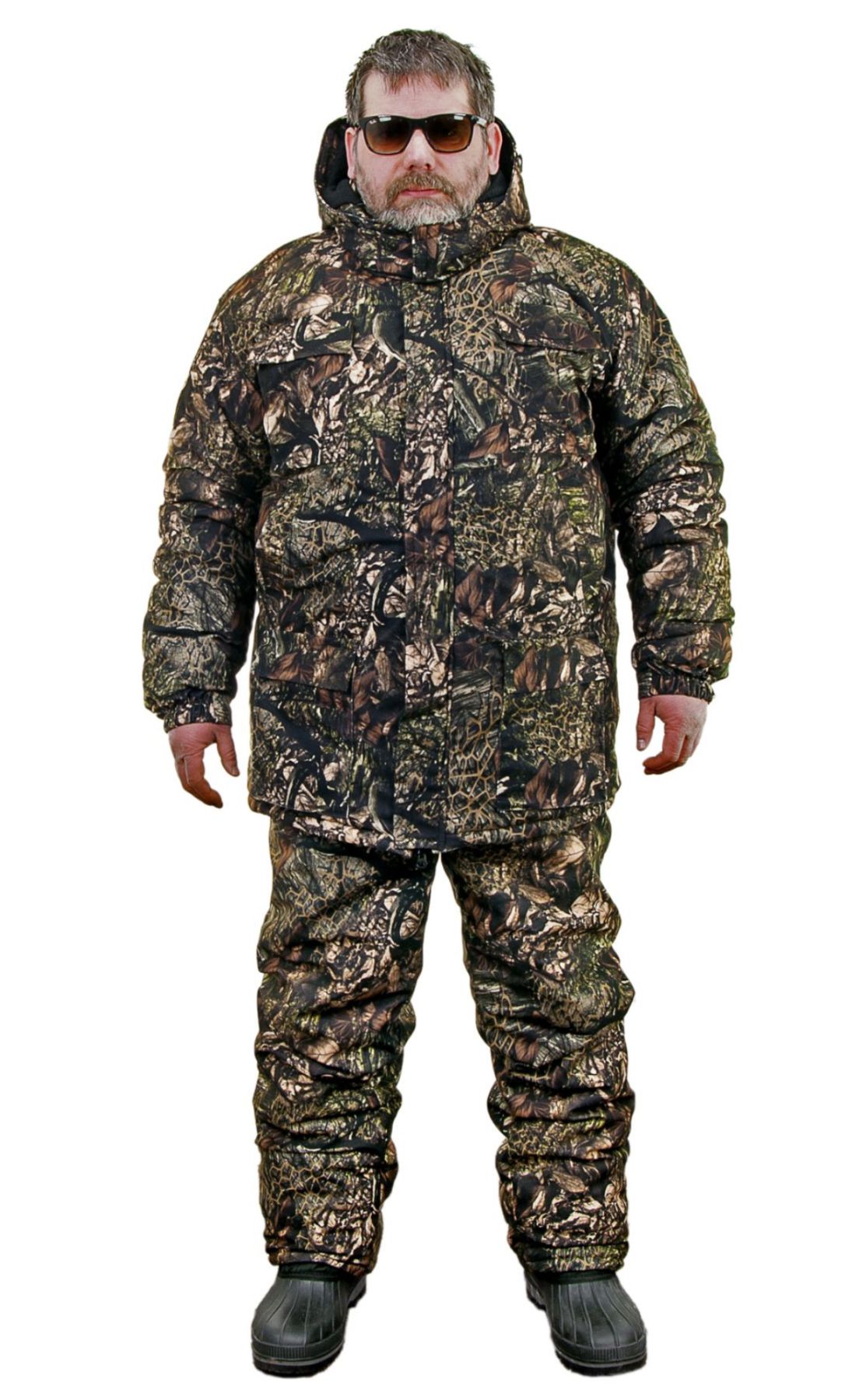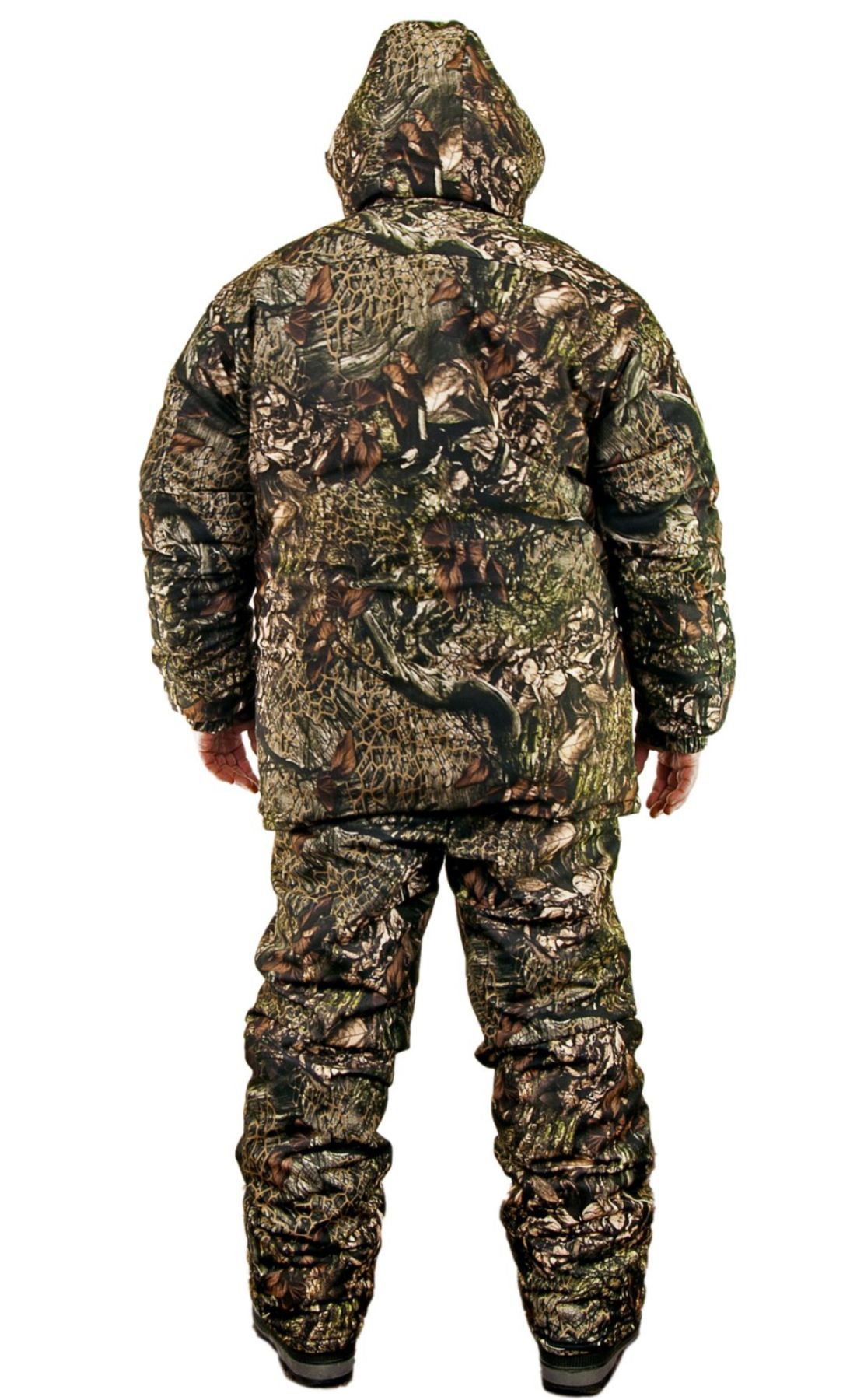 Костюм складається з куртки та напівкомбінезона, які не обмежують рухів. Тканина м’яка, гладка на дотик, при русі не створює додаткового шуму, тому не варто хвилюватися, що шурхіт одягу спугне здобич. Костюм підходить як для активного пересування, так і для сидіння.