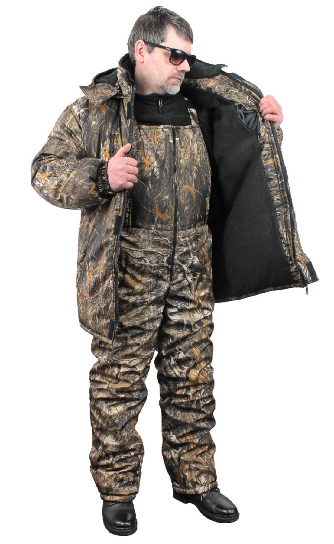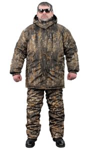 Цей теплий, дихаючий зимовий костюм ідеально підходить для активного відпочинку на природі при температурі повітря до мінус 25 градусів. Костюм складається з куртки та напівкомбінезона. Він дуже легкий і не обмежує рухів. Тканина м’яка, гладка на дотик, при русі не створює додаткового шуму, тому не варто хвилюватися, що шурхіт одягу спугне здобич. Костюм підходить як для активного пересування, так і для сидіння.
