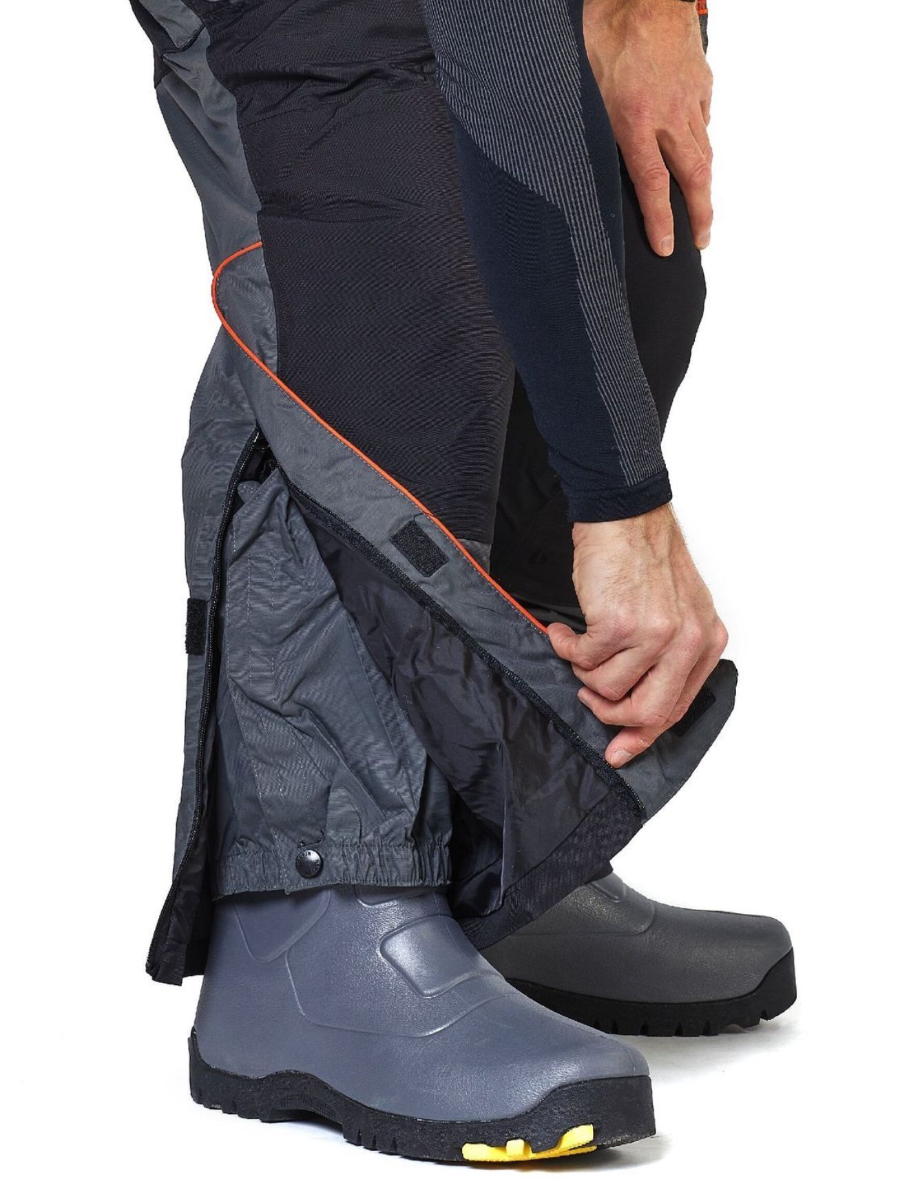 Трикотажні манжети внизу штанин запобігають потраплянню снігу й дозволяють носити костюм навіть із низьким взуттям.