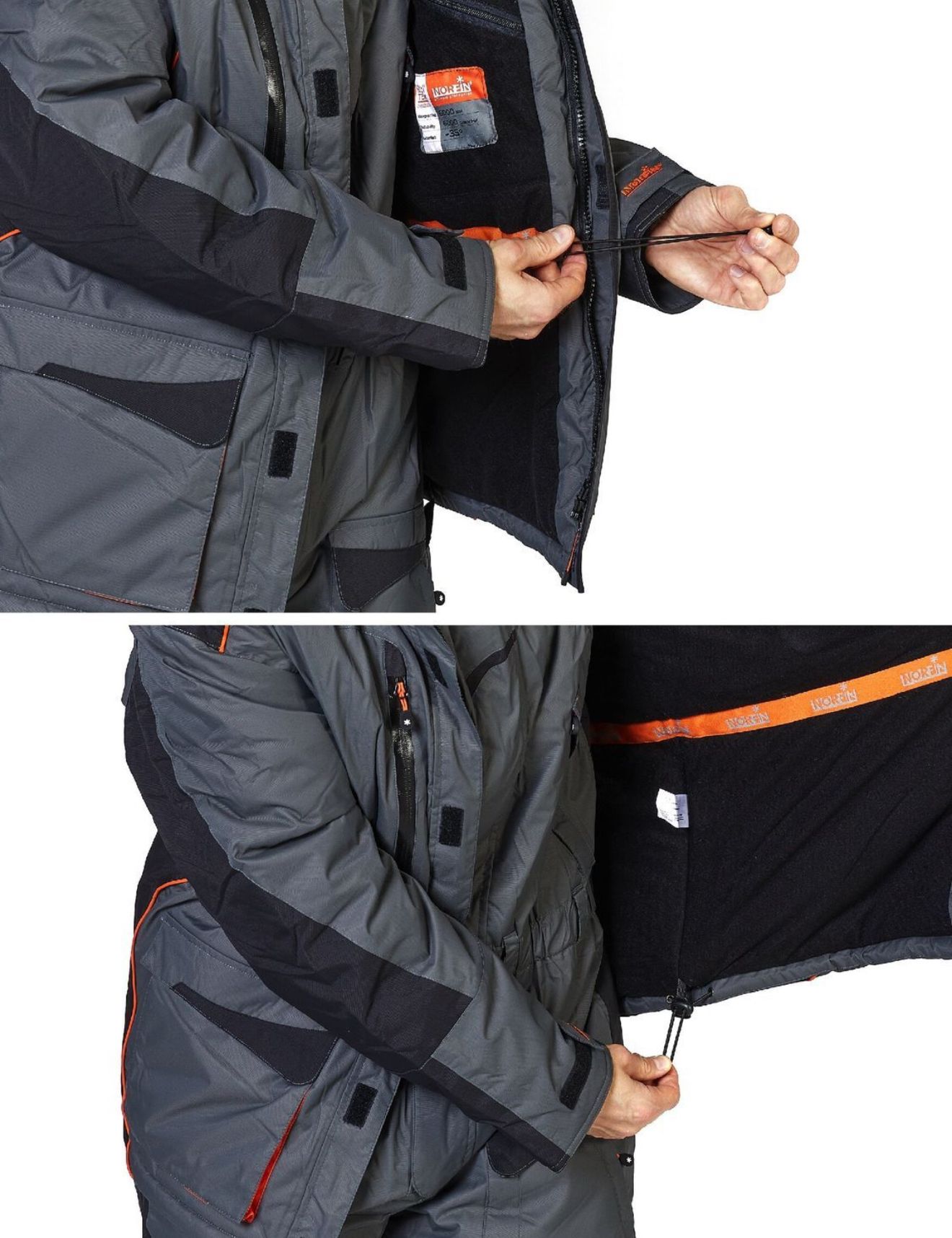Низ куртки та талію можна регулювати утяжками, що запобігає потраплянню снігу. Внутрішні манжети щільно прилягають до рук і захищають від холоду.
