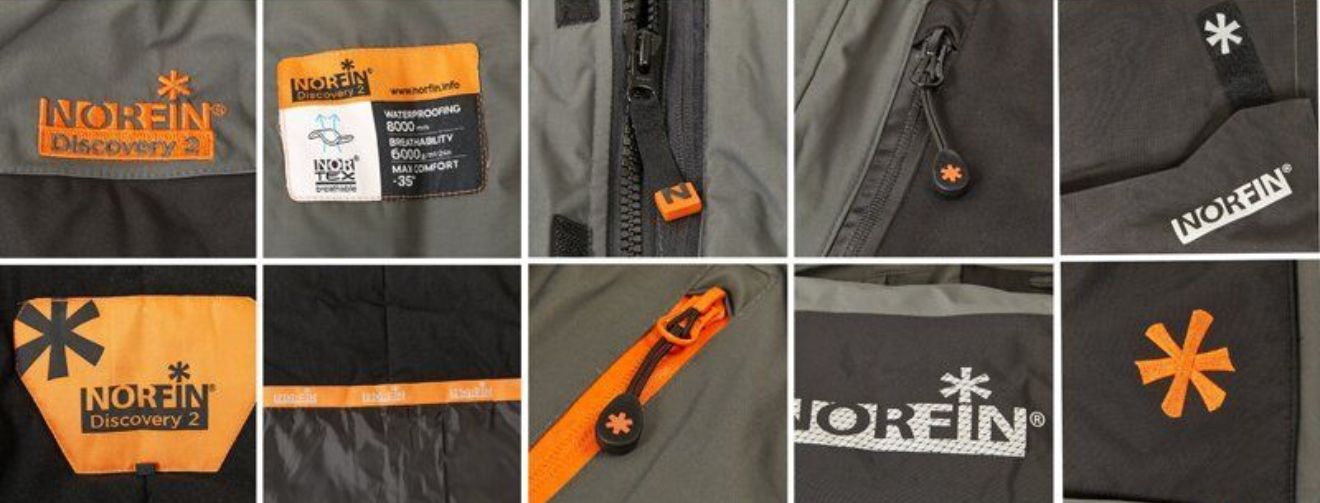 Високотехнологічна мембранна тканина Norfin Breathable, запатентована брендом, захищає від вологи, снігу й бруду, забезпечуючи при цьому вентиляцію повітря всередині костюма. Усі шви якісно оброблені, витримують навантаження та тертя, проклеєні спеціальним складом, що гарантує повну герметичність.