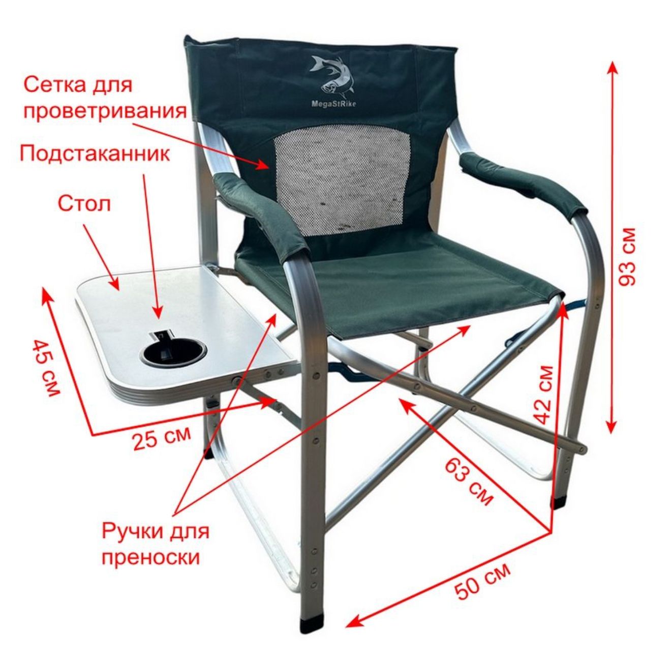 Крісло розкладне Megastrike - Посилене - SH9-3-12 - Зі столиком та підсклянником - Зелений - 50х63х93 см