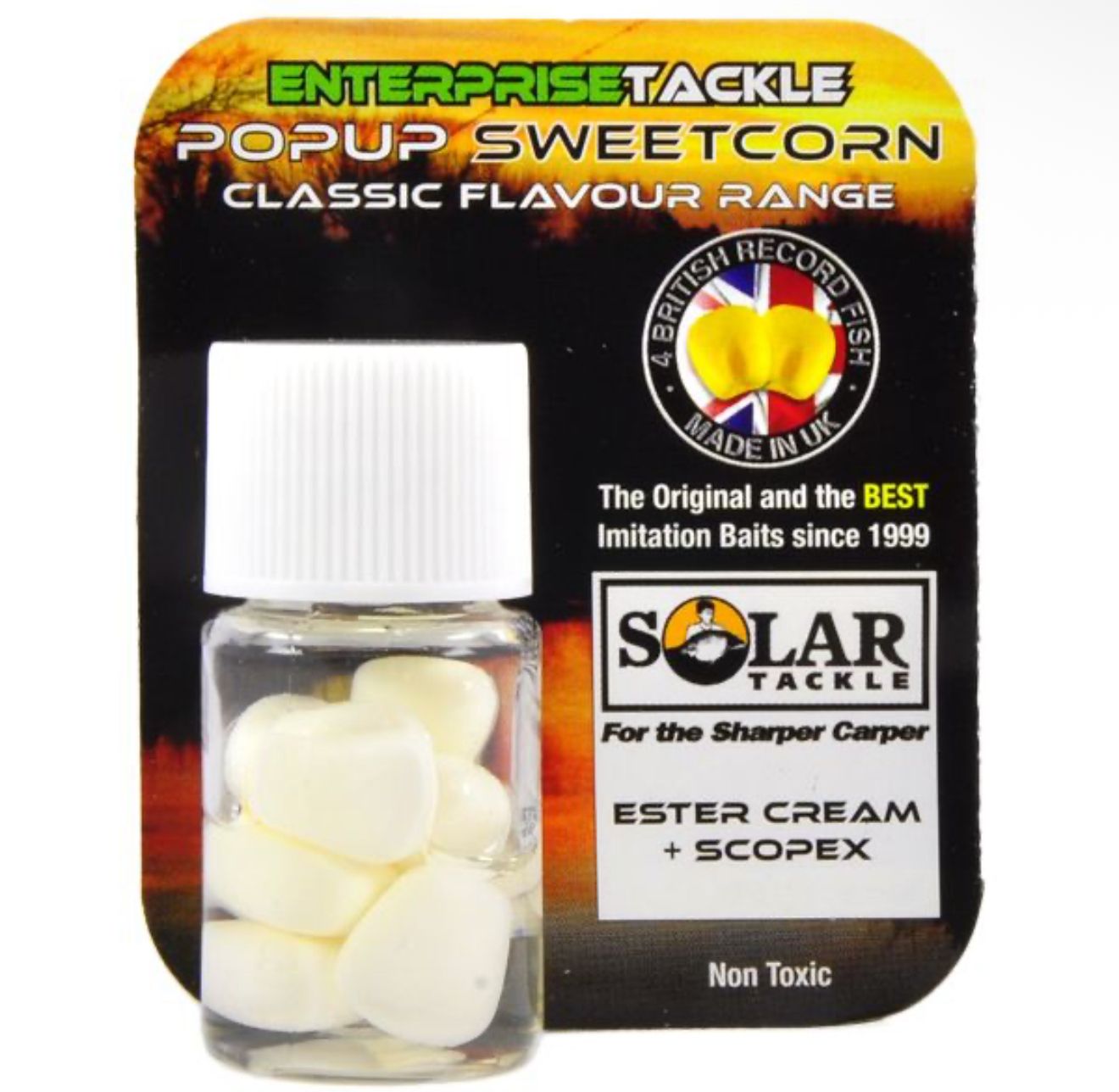 Силіконова кукурудза Solar – Ester Cream + Scopex Corn White — плаваюча насадка, виготовлена зі силікону та просочена аттрактантом Solar з ароматом ефірного крему та молочної ванілі.
