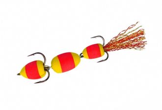 Загальна довжина 10 см робить мандулу універсальною – вона ефективно працює при ловлі судака, щуки, окуня, сома та жереха. Оснащена двома гострими трійниками №2 та №4. Хвіст прикрашений двоколірним люрексом, який під час виробництва додатково розпушується вручну для більшої привабливості у воді.