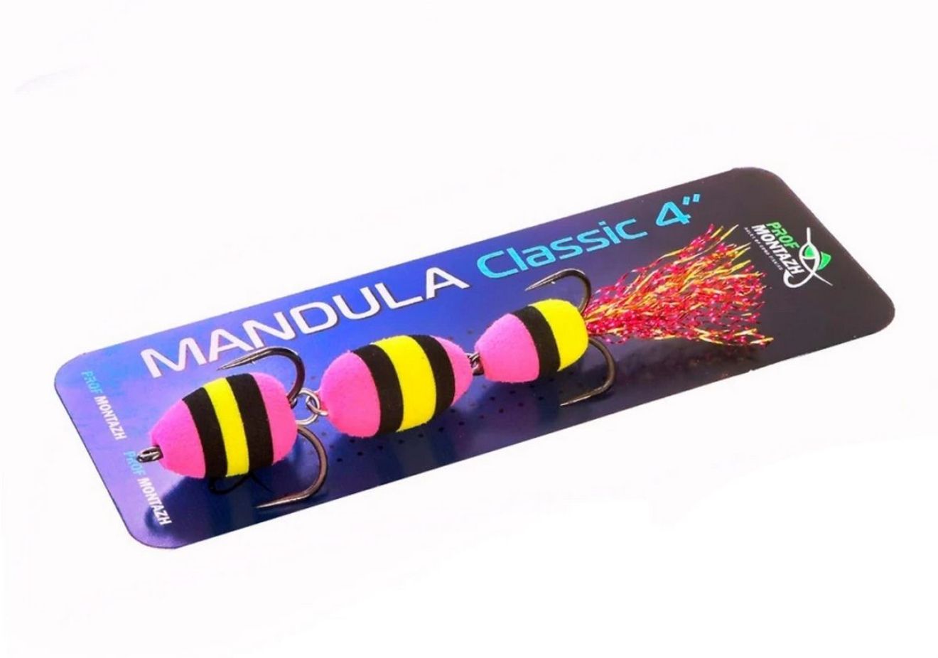 Загальна довжина 10 см робить мандулу універсальною – вона ефективно працює при ловлі судака, щуки, окуня, сома та жереха. Оснащена двома гострими трійниками №2 та №4. Хвіст прикрашений двоколірним люрексом, який під час виробництва додатково розпушується вручну для більшої привабливості у воді.