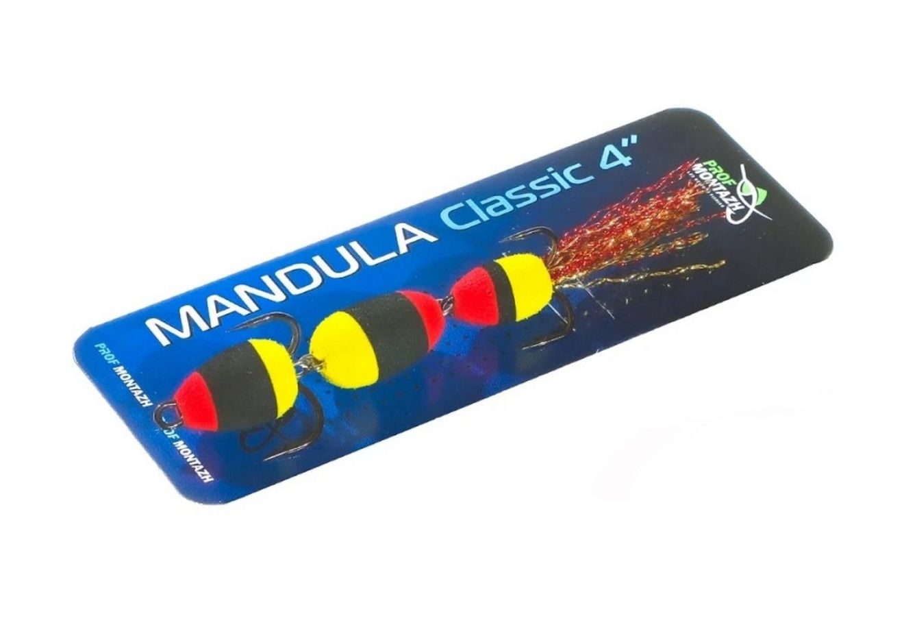 Загальна довжина 10 см робить мандулу універсальною – вона ефективно працює при ловлі судака, щуки, окуня, сома та жереха. Оснащена двома гострими трійниками №2 та №4. Хвіст прикрашений двоколірним люрексом, який під час виробництва додатково розпушується вручну для більшої привабливості у воді.
