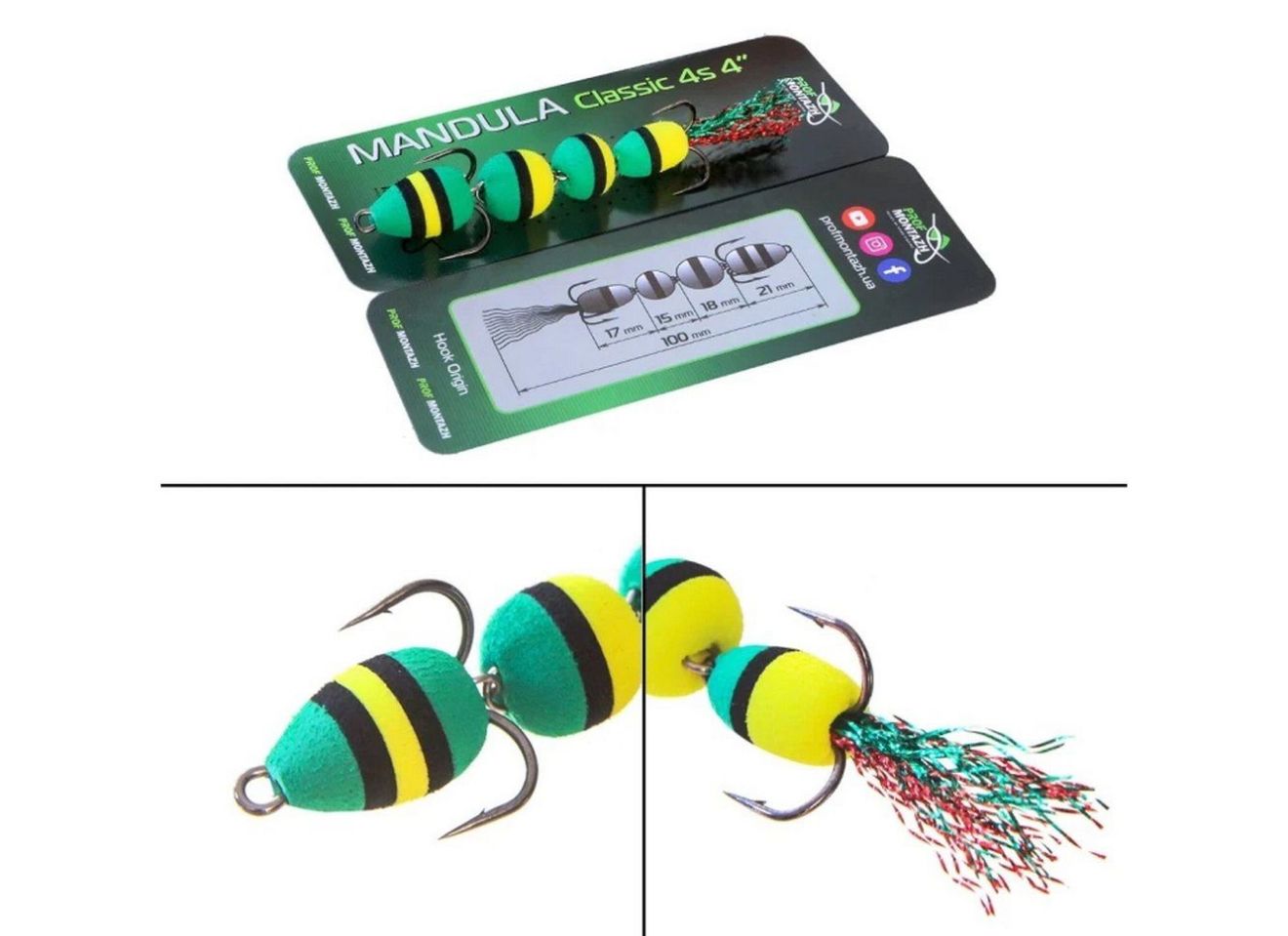 Мандула Classic 4S 4" (100 мм) - состоит из 4 сегментов шаровидной формы - это предоставляет приманке повышенную подвижность в воде. Оснащается двумя острыми тройниками номер 2 и 4. Опушка на хвосте из качественного люрекса, который на этапе изготовления мандулы дополнительно рыхлится вручную.