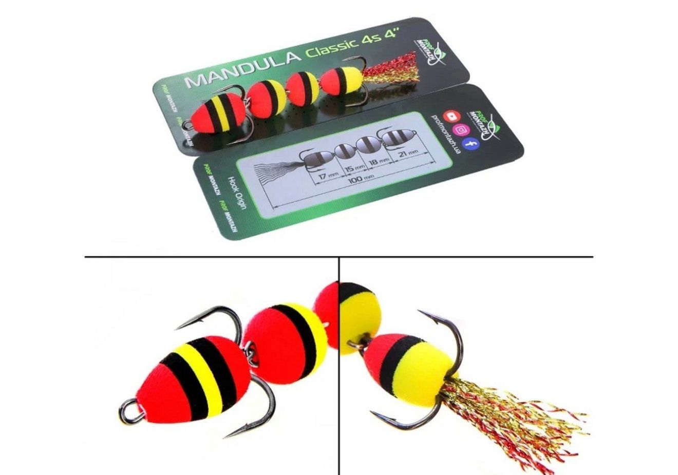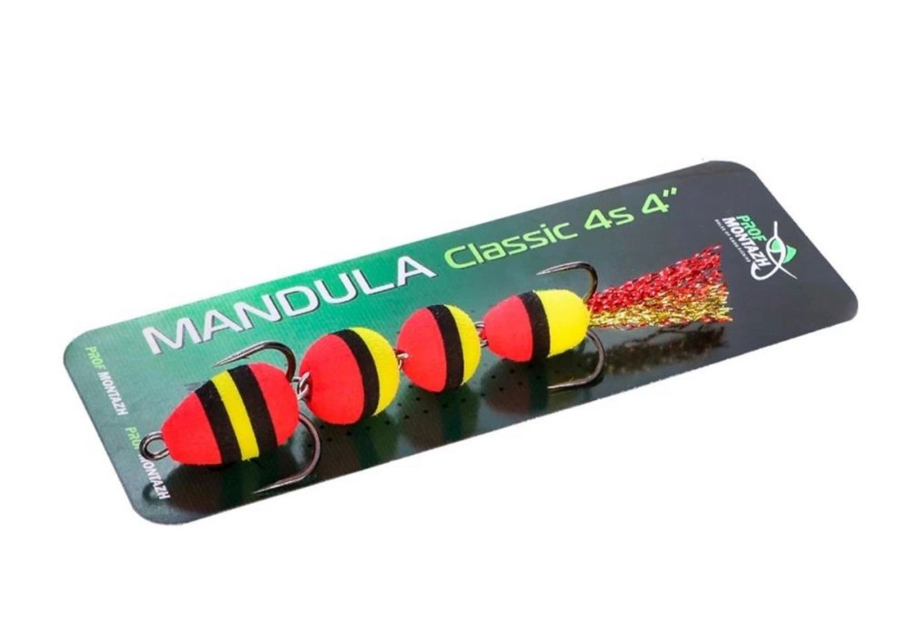 Мандула Classic 4S 4" (100 мм) - состоит из 4 сегментов шаровидной формы - это предоставляет приманке повышенную подвижность в воде. Оснащается двумя острыми тройниками номер 2 и 4. Опушка на хвосте из качественного люрекса, который на этапе изготовления мандулы дополнительно рыхлится вручную.