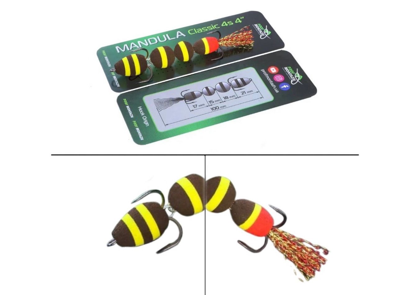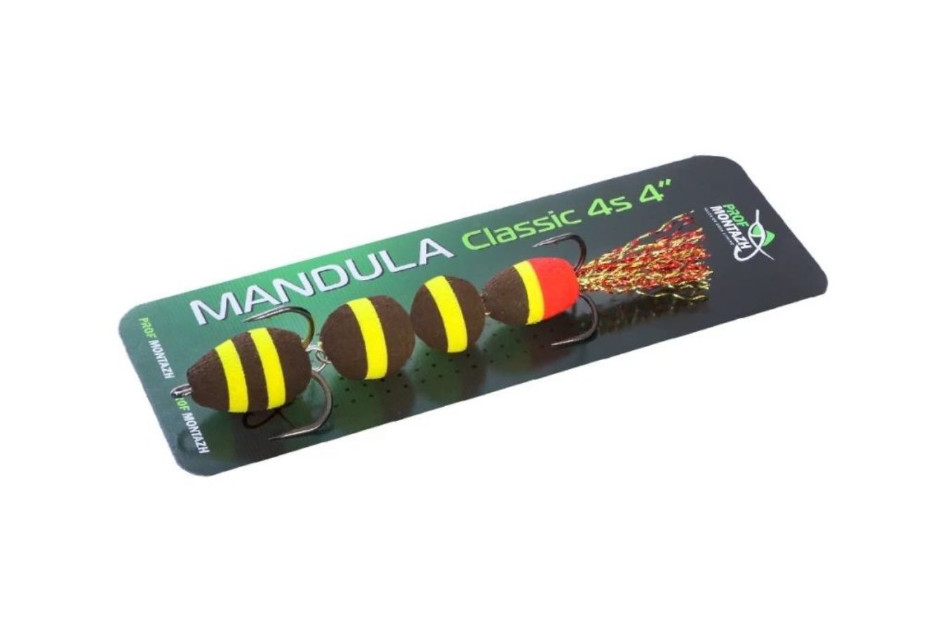 Мандула Classic 4S 4" (100 мм) - состоит из 4 сегментов шаровидной формы - это предоставляет приманке повышенную подвижность в воде. Оснащается двумя острыми тройниками номер 2 и 4. Опушка на хвосте из качественного люрекса, который на этапе изготовления мандулы дополнительно рыхлится вручную.