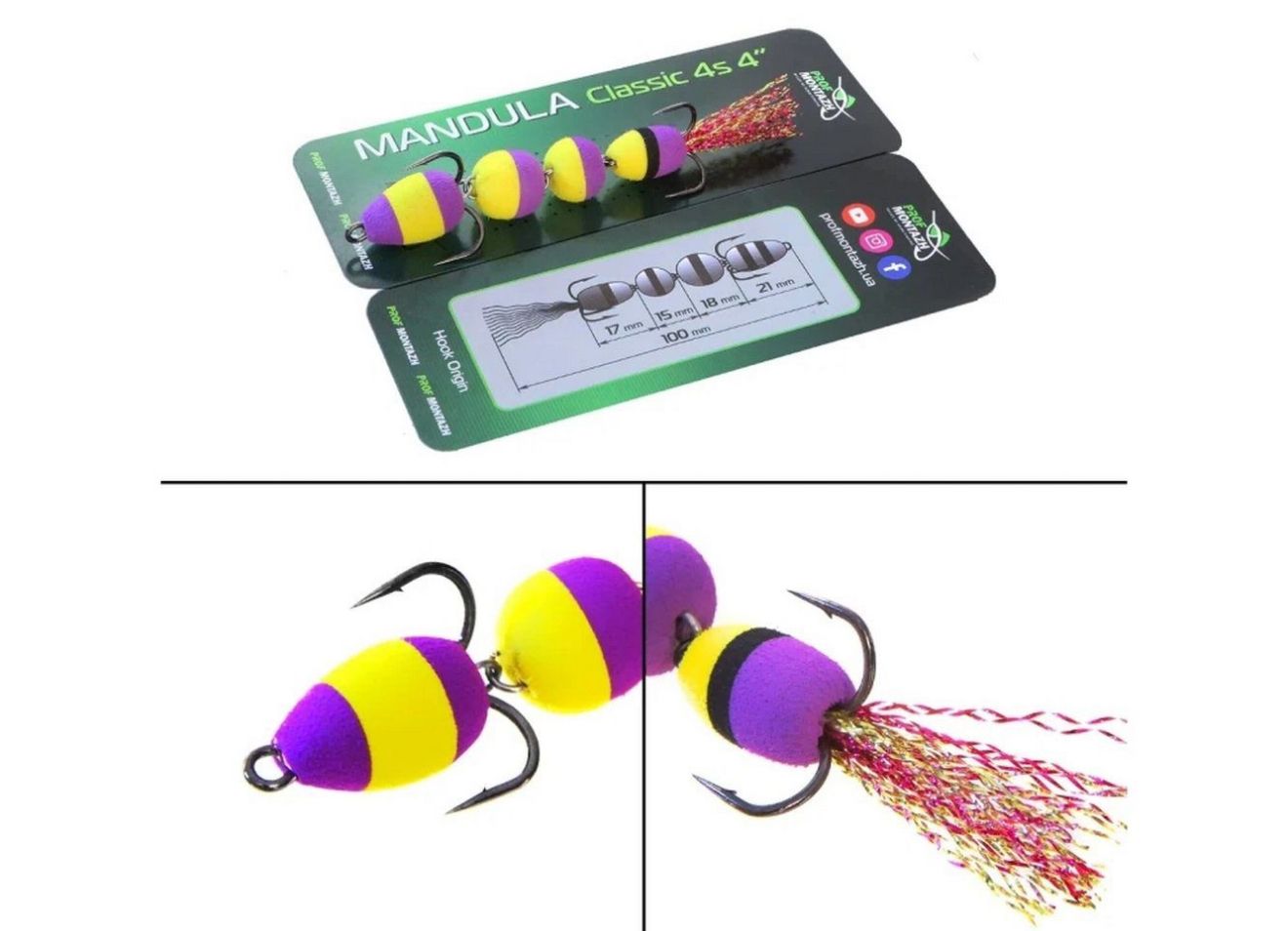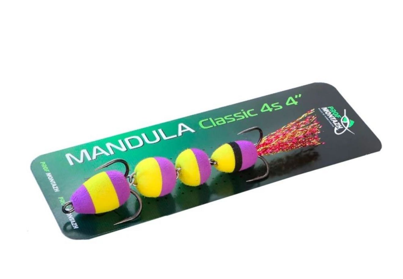 Мандула Classic 4S 4" (100 мм) - состоит из 4 сегментов шаровидной формы - это предоставляет приманке повышенную подвижность в воде. Оснащается двумя острыми тройниками номер 2 и 4. Опушка на хвосте из качественного люрекса, который на этапе изготовления мандулы дополнительно рыхлится вручную.
