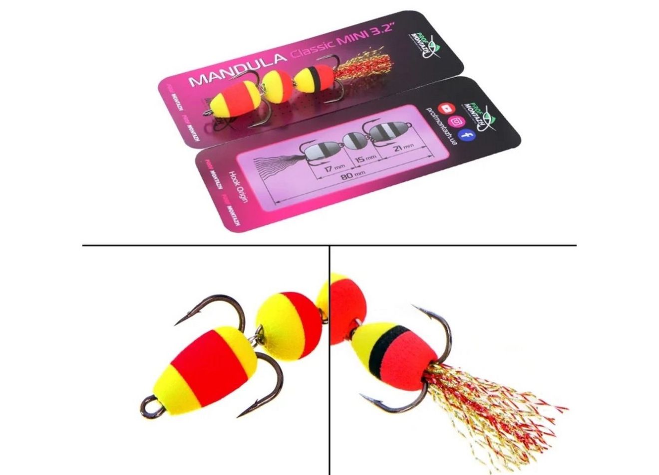 Мандула відмінно збалансована – ефективна як на озерах і водосховищах, так і на річках. Вона не вимоглива до типу та ваги грузила, чудово працює як з класичною розбірною «чебурашкою», так і з монтажами Джиг-Ріг чи іншими варіантами джигових оснащень.