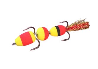 Модель оснащена двома гострими трійниками №2 та №4, а на хвості розташована яскрава опушка з люрексу, яка вручну додатково розпушується для створення більшої привабливості.