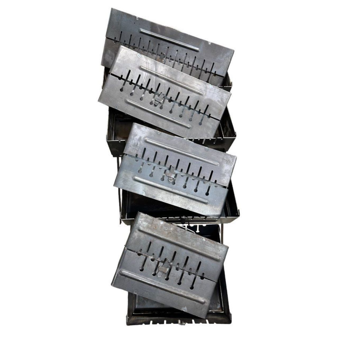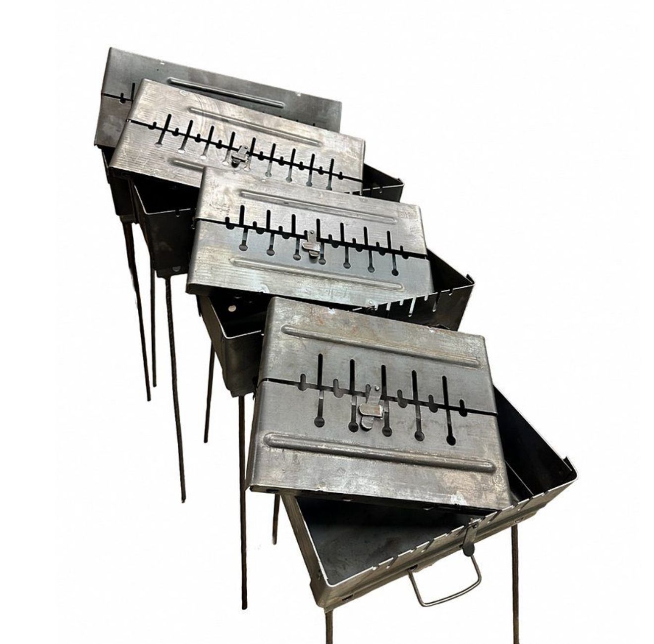 Це дуже простий та надійний двоярусний якісний мангал, з великим запасом міцності та надійності. Мангал виготовлений з листів гарячекатаної сталі, тому він витримує вплив високих температур і не змінює початкову форму після багаторазового використання.