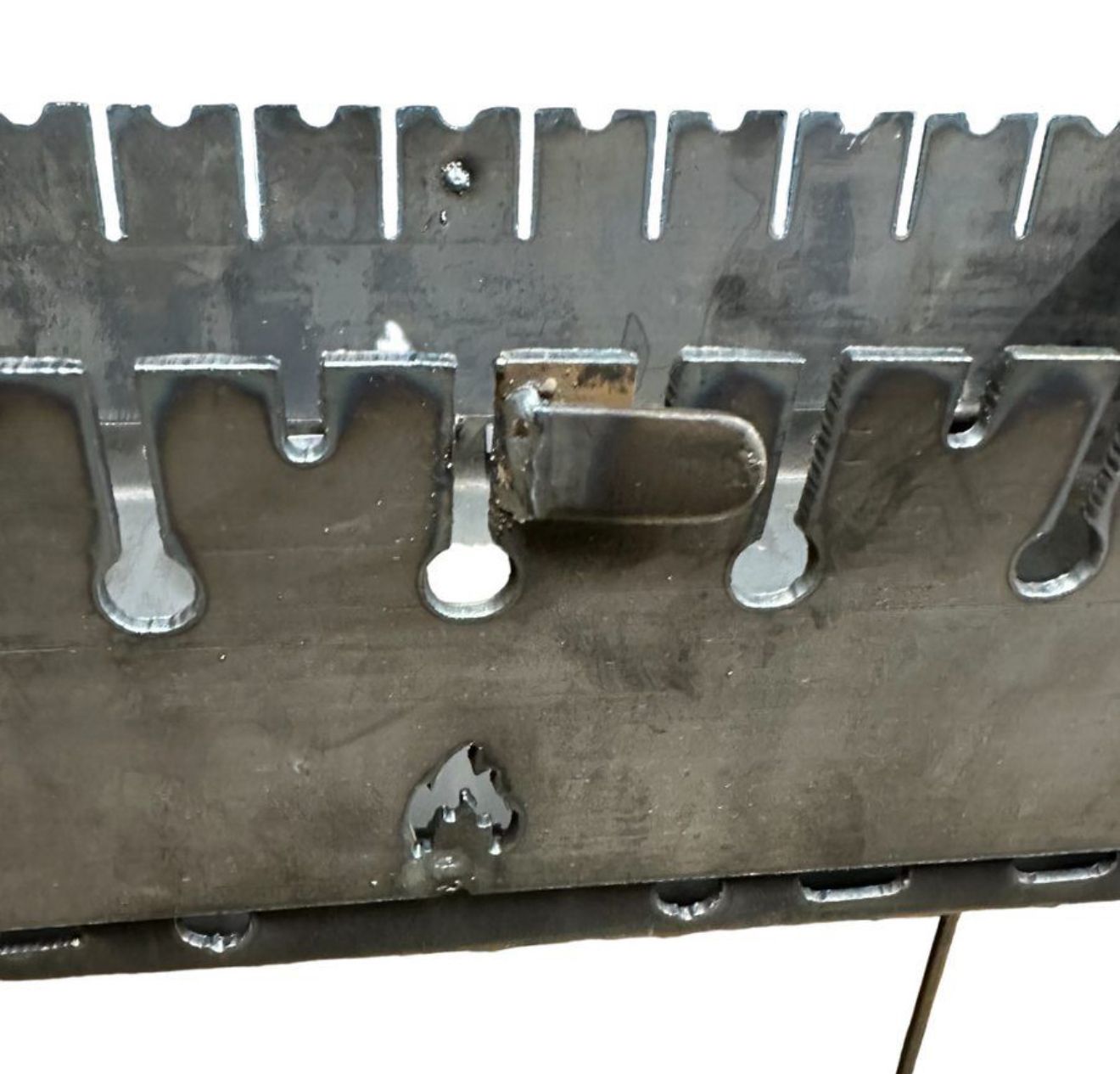Дно мангалу Вогник виготовлено із цільного листа металу товщиною 3 мм, а не зварено з кількох елементів. Це зменшило кількість зварних швів та підвищило міцність та довговічність мангалу. Ніжки мангала виготовлені зі сталевого прутка діаметром 10 мм і виконані знімними - вкручуються у дно.