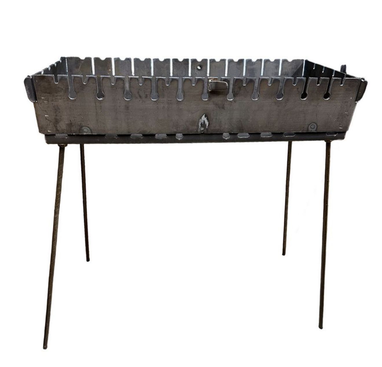 Це дуже простий та надійний двоярусний якісний мангал, з великим запасом міцності та надійності. Мангал виготовлений з листів гарячекатаної сталі, тому він витримує вплив високих температур і не змінює початкову форму після багаторазового використання.