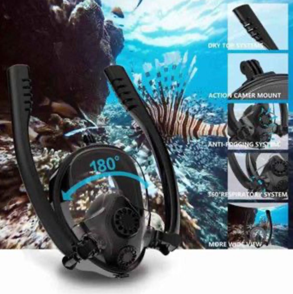 Маска для плавання - Повнолицева - На 2 трубки - Синя