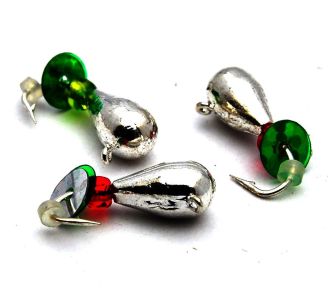 Мормишка Вольфрам Крапля з бісером - Світле срібло - 10шт./уп - 1.04 г, Гачок №12