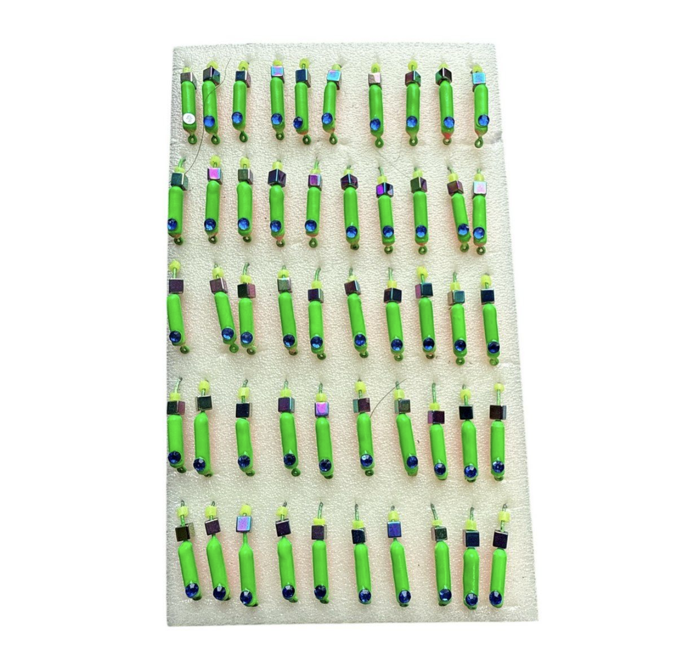 Форма «Гвоздик» — це витягнуте тіло з підвіскою на гачку. У цій модифікації використано елемент «котяче око» з кубиком хамелеон, який створює світлові відблиски та додаткові візуальні подразники. Під час гри кубик рухається та відбиває світло, провокуючи рибу на атаку навіть у складних умовах ловлі.
