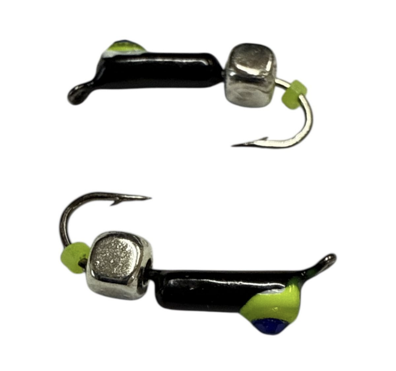 Подовжена форма «цвяшка» з підвісним елементом у вигляді «котячого ока» та металевого кубика створює додаткові візуальні й звукові подразники під час гри, що значно підвищує привабливість приманки. Звук і рух підвіски ефективно провокують рибу на атаку.