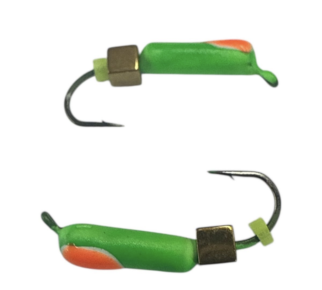 Корпус мормишки виготовлений із вольфраму, що забезпечує велику вагу за мінімальних розмірів. Завдяки цьому приманка швидко досягає робочої глибини, добре контролюється під час гри та стабільно працює навіть за пасивного клювання. Вольфрамова основа робить мормишку міцною та довговічною.