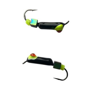 Мормишka Вольфрамова "Володимирська Гвоздика" з кубиком-хамелеоном – 2.5 мм – 0.5 г – Чорна з жовтою цяткою та каменем – Арт. 605