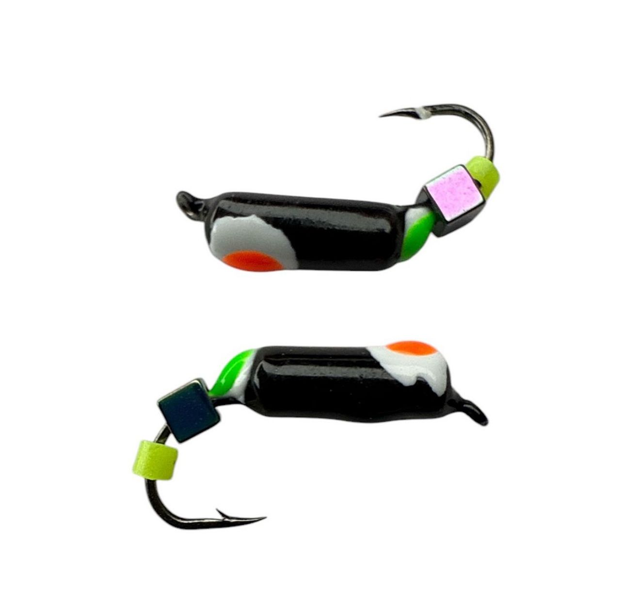 Мормишка «Гвоздик» із кубиком хамелеон підходить для безмотильної ловлі риби. Чорний гвоздик із латунним шариком універсальний, а різнокольорові кубики роблять ловлю більш результативною навіть для початківців.