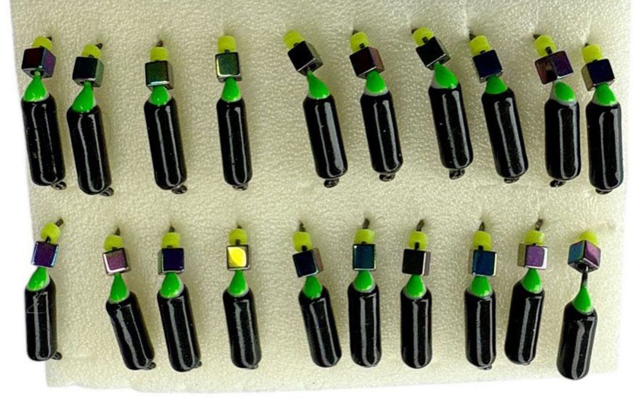 Мормишka Вольфрамова «Володимирський Гвоздик» з кубиком хамелеон – 4 мм – 0.9 г – Чорний із зеленою цяткою – Арт. 593