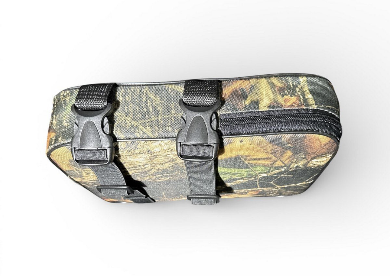 Фіксація здійснюється за допомогою двох еластичних ременів із надійними кліпсами, а блискавка забезпечує швидке й зручне надягання та знімання. Камуфляжне забарвлення «Дубок» робить модель практичною та універсальною для риболовлі й активного відпочинку на природі.