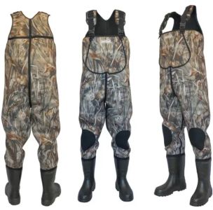 Напівкомбінезон виготовлений з неопрену камуфльованих кольорів - "дуб" або "очерет". Запатентовані забарвлення "TeclWood" чудово маскуються під строкатим тлом лісу або очерету.