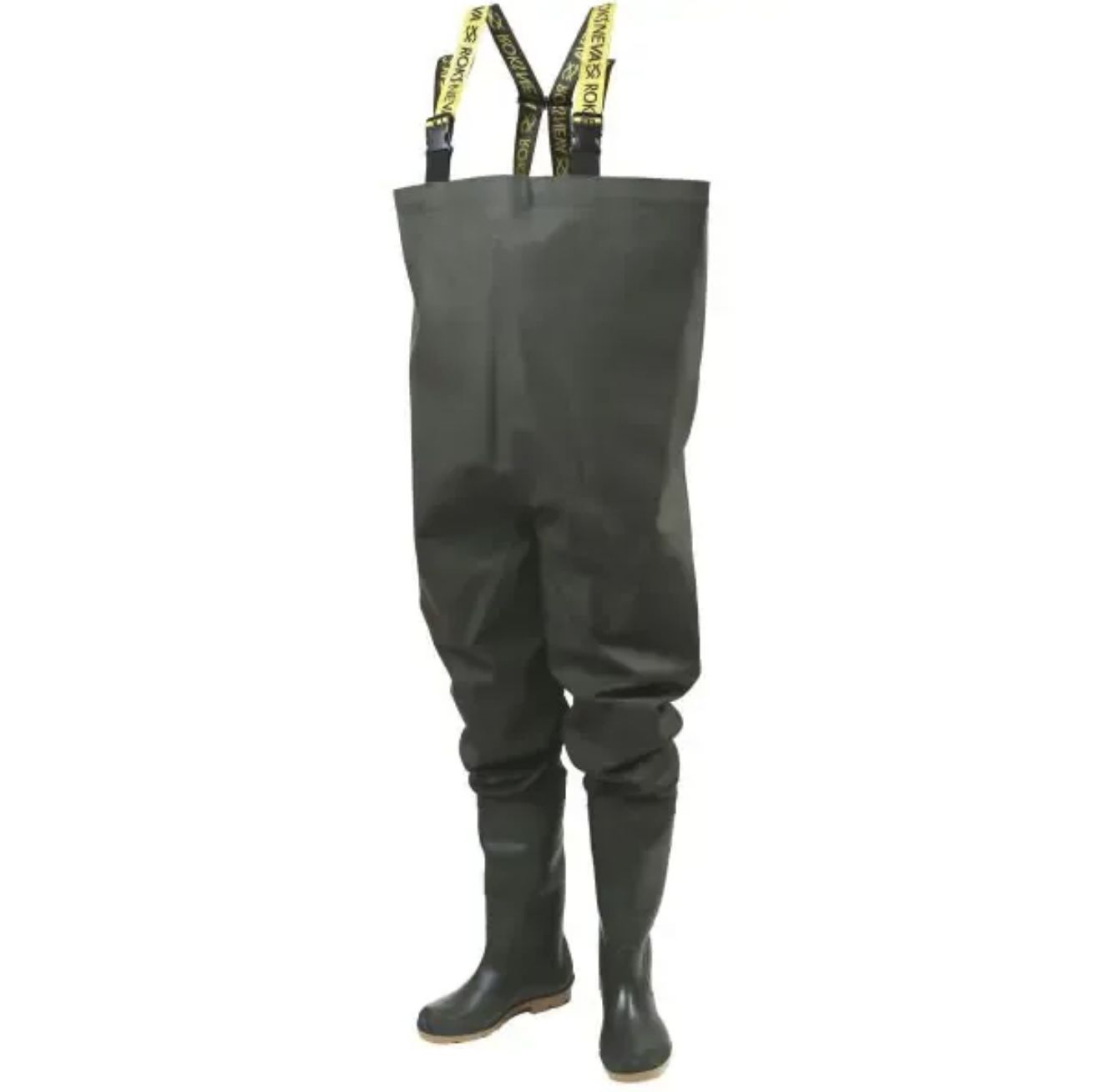 Напівкомбінезон з регульованими по висоті лямками та пластиковим роздільником на спині, зручною внутрішньою кишенею. Напівкомбінезон виготовлений із водонепроникного матеріалу (трикотажного полотна просоченого ПВХ) та приварений до чобіт.