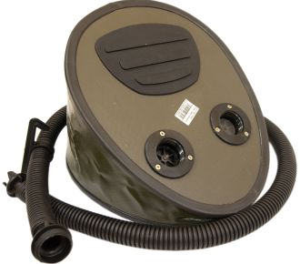 Цей насос має стандартну конструкцію, відому як «жабка». Він з’єднується з клапаном човна через гофрований шланг, працюючи м’язовою силою. Для зручності накачування на березі можна використовувати ногу, а для екстрених ситуацій – працювати руками прямо на воді.