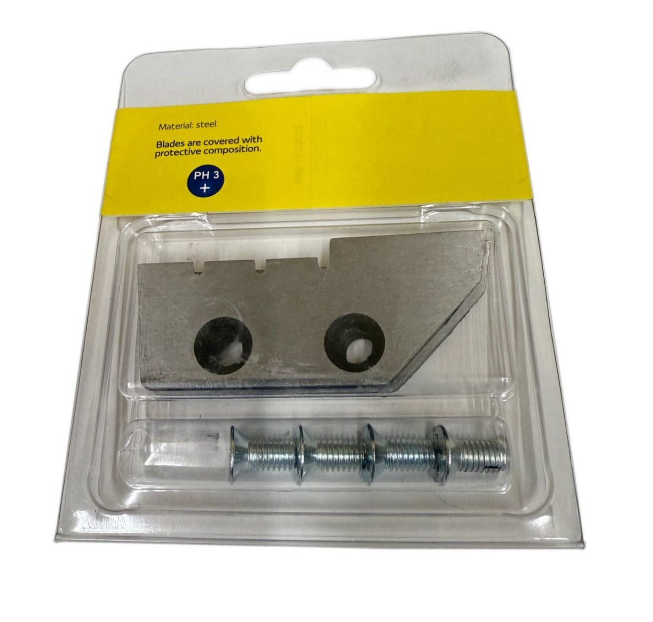 Ножі постачаються у прозорому блістері з жовтою етикеткою, на якій зазначено діаметр та маркування «L» (ліве обертання).