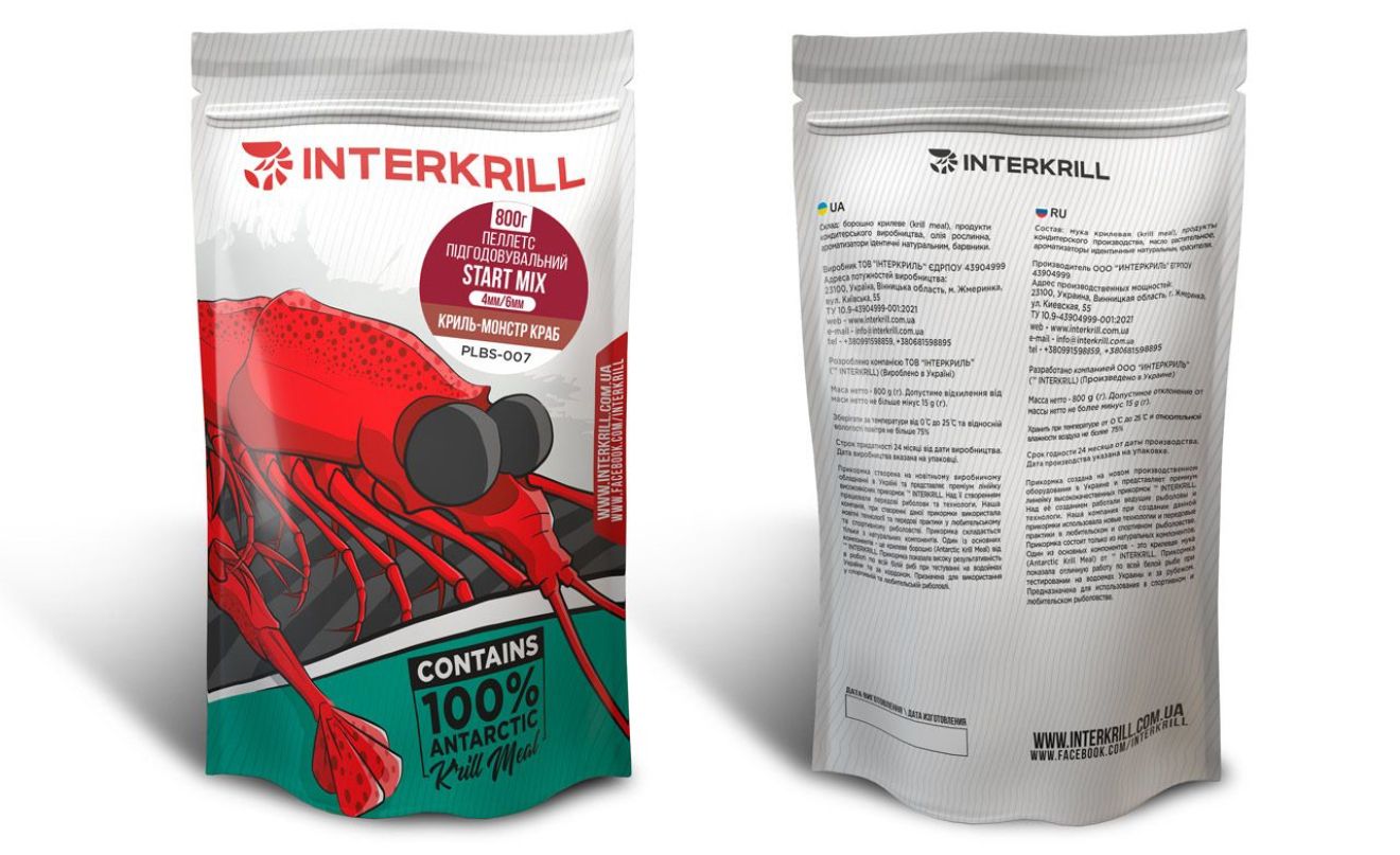Пеллетс Interkrill Start Mix (4mm & 6mm) Кріль-Монстр Краб - 800 г
