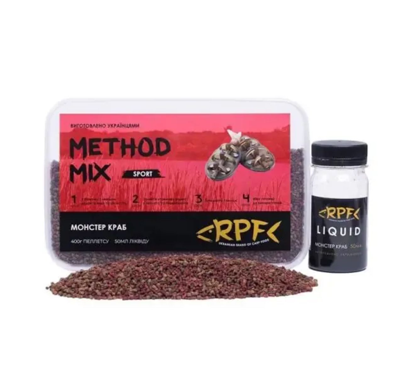 Підгодовування RPF Метод-Мікс 2в1 "Sport" - 400 г пелетса Ø2 мм + 50 мл ліквіду - Монстер краб