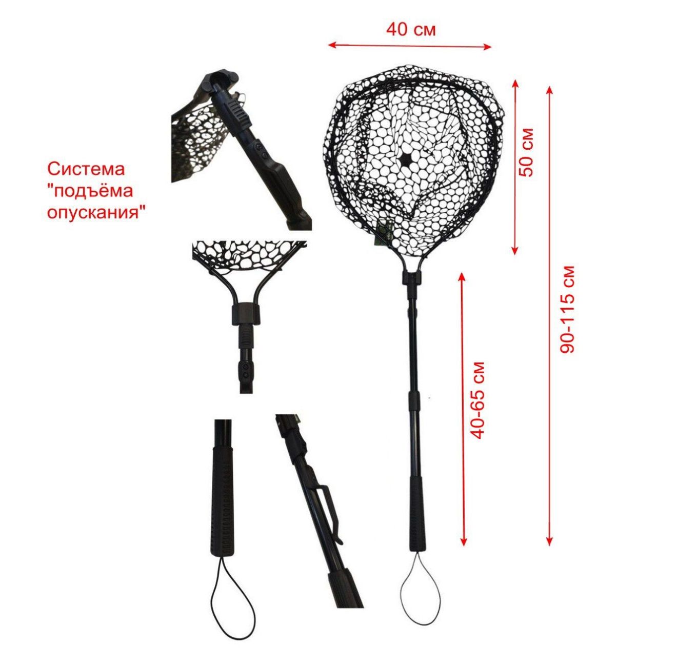 Підсак Briz 001 - Телескопічний - 50х40 см - Осередок мережі 18-25 мм - Чорний