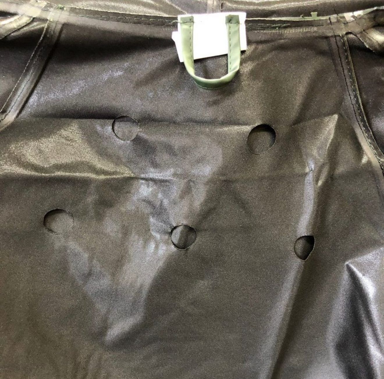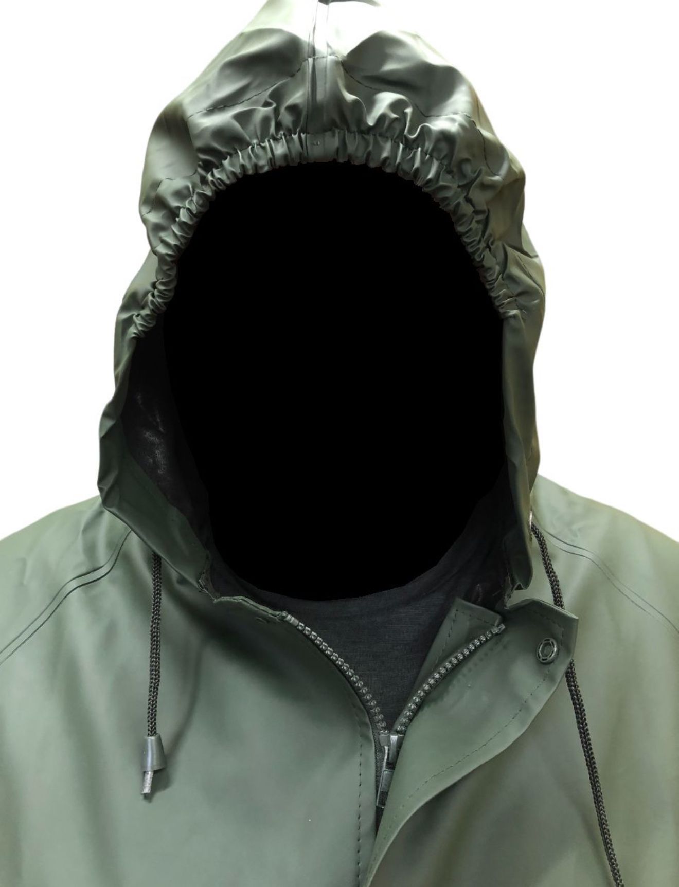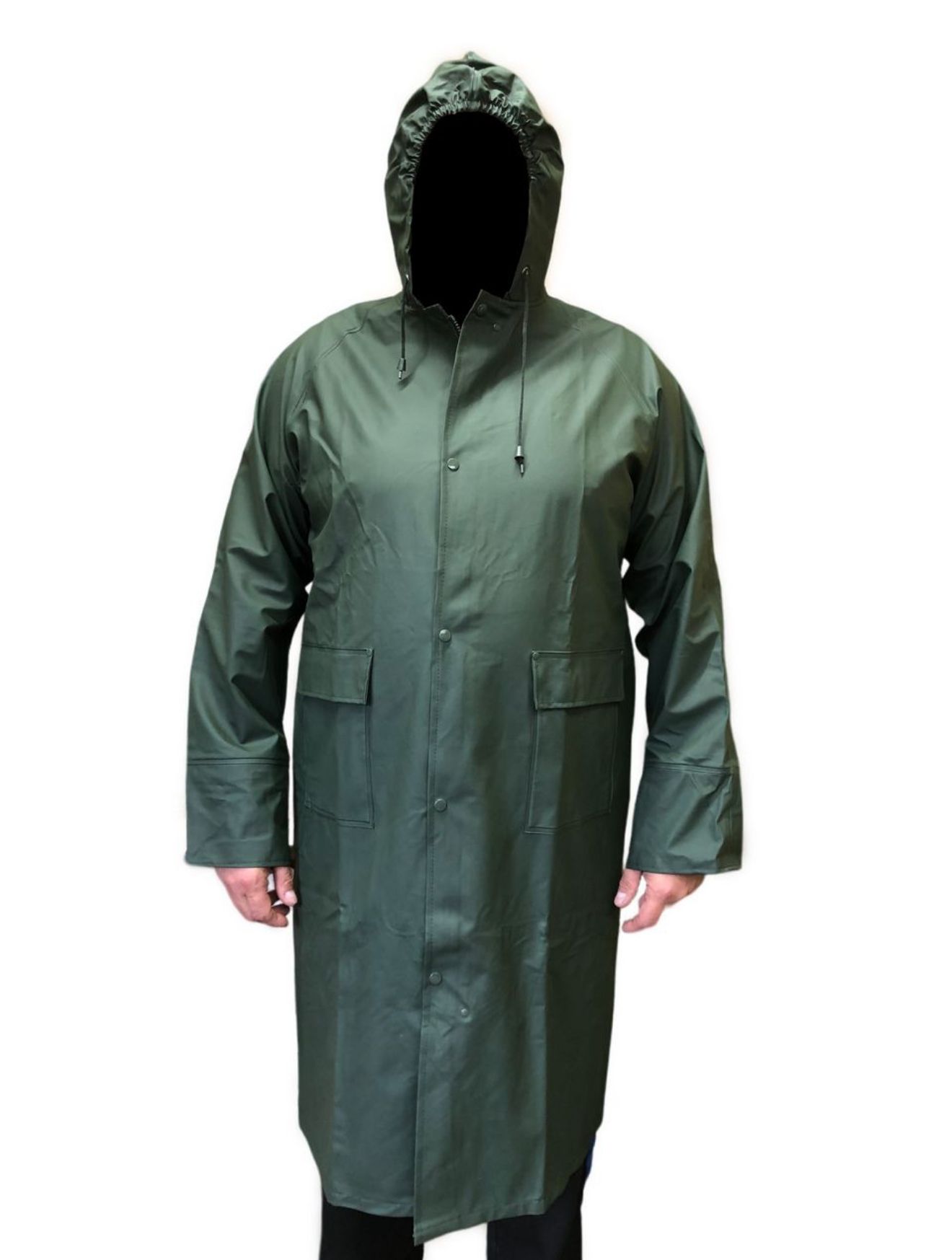 Плащ-дощовик – невід'ємний атрибут осінньої риболовлі. Виготовлений із щільної тканини, що не пропускає воду, на поліестеровій основі з внутрішнім шаром з PVC. Шви надійні та гарантують максимальну водонепроникність. Плащ обладнаний капюшоном. Основна застібка додатково має спеціальні кнопки-застібки.