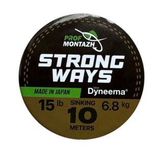 Повідковий матеріал STRONG WAYS Black Brown 15 LB (6,8 кг, 10 м) виготовлений із високоякісного волокна Dyneema японського виробництва. Він вирізняється стійкістю до стирання, довговічністю, м’якістю та надійністю у вузлах.